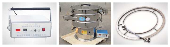 超聲振動篩是將220V、50Hz或110V、60Hz電能轉化為18KHz的高頻電能,輸入超聲換能器,將其變成18KHz機械振動,從而達到篩分和清網的目的。該系統在傳統的振動篩基礎上在篩網上引入一個低振幅、高頻率的超聲振動波(機械波),以改善超微細分體的篩分性能。特別適合高附加值精細分體的用戶使用。